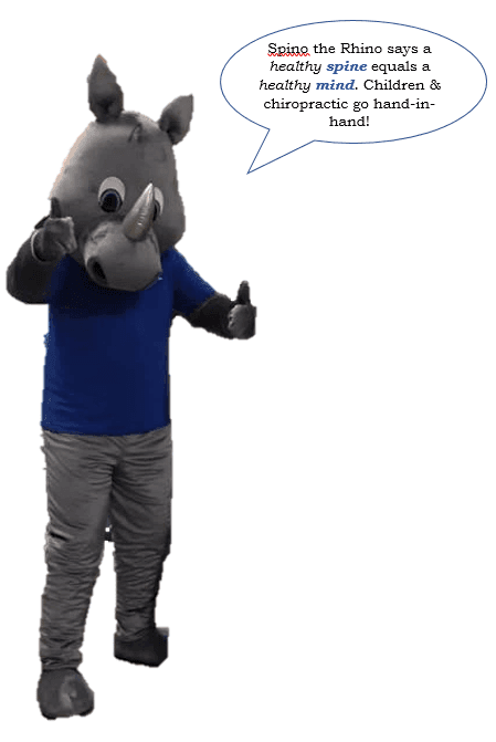 Spino the Rhino says a healthy spine equals a healthy mind. Children & chiropractic go hand-in-hand!